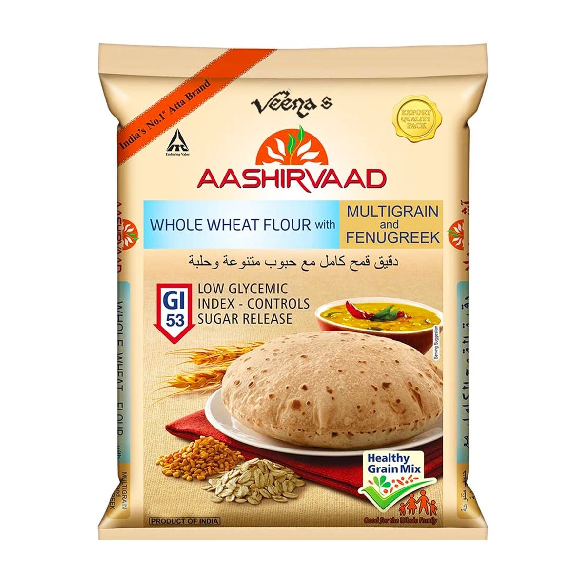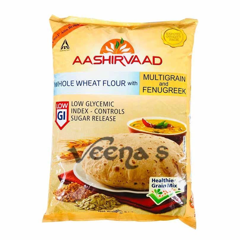 AASHIRVAAD Sugar Release Control Atta has been designed with an optimal focus on retaining a ‘Low Glycaemic Index.’ This product contains whole wheat atta (84.5%), multigrain flour mixture (15.4%), and Fenugreek Seed Powder (0.1%)